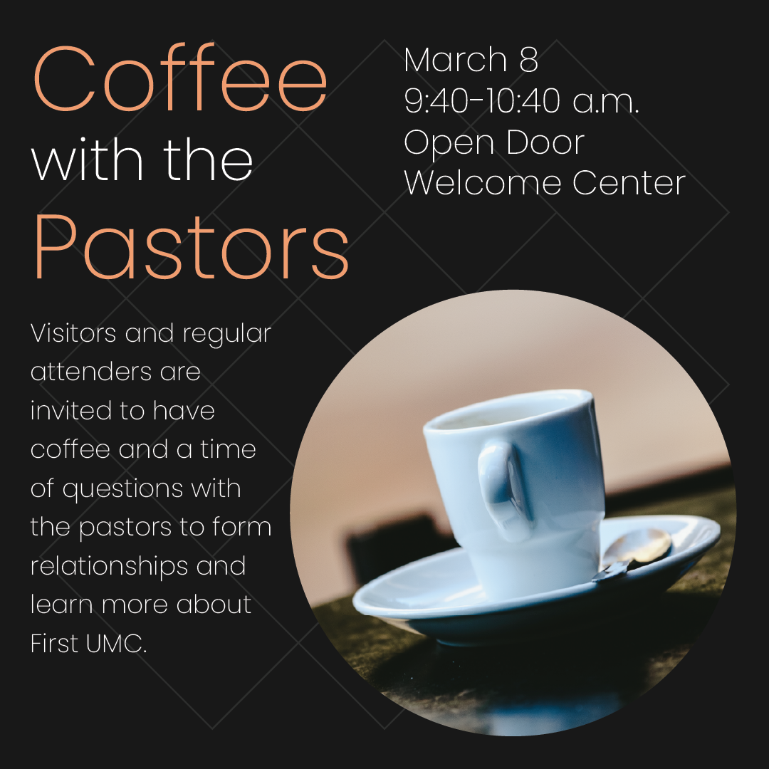 Visitors and regular attenders are invited to have coffee and a time of questions with the pastors to form relationships and learn more about First UMC.